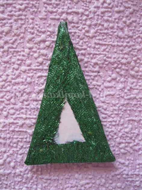 4. Обклеїти основу з картону тканиною. Важливо, приклеюємо тільки припуски з зворотного боку, тому з лицьової будемо пришивати намистини.