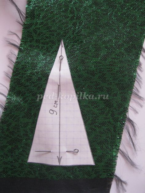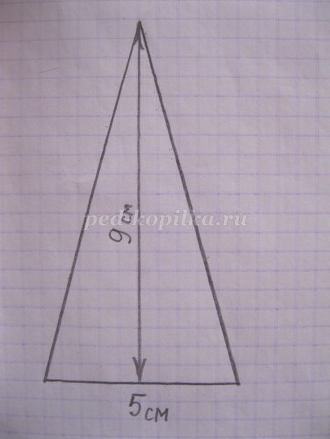 2. Виготовити викрійку ялинки. Основа - рівнобедрений трикутник з основою 5 см і висотою 9 див.