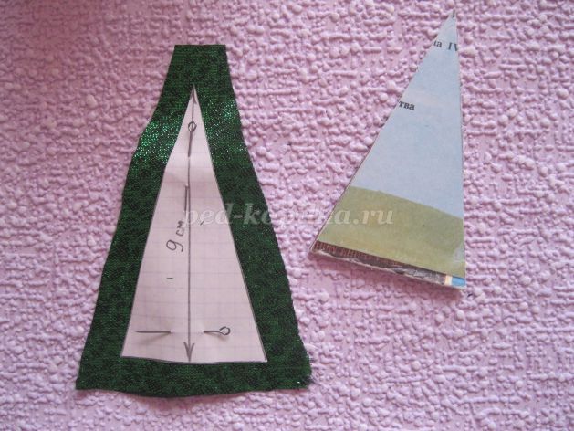3. Викроїти деталь з тканини, з урахуванням припусків 1-1,5 см. Вирізати деталь по викрійці з щільного картону.