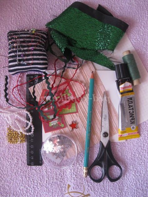 6. Приклеюємо тасьму, ялинку і зірку (декоративний елемент).