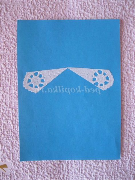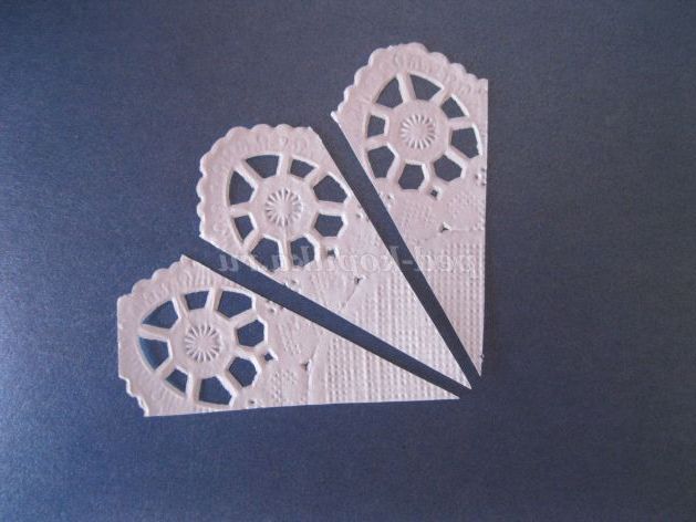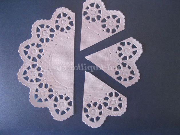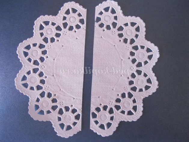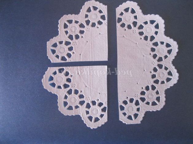 Ажурну паперову серветку розрізаємо навпіл, половинку на чверті.