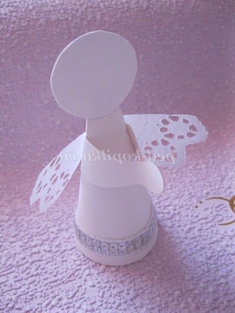 Приклеюємо крила ззаду. Тулуб (плаття) можна оформити декоративною тасьмою.