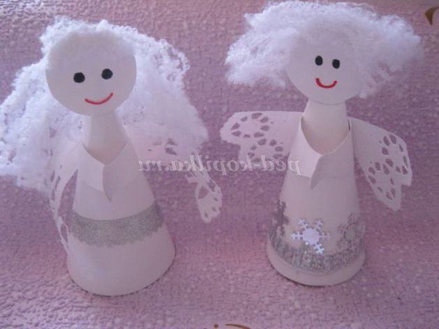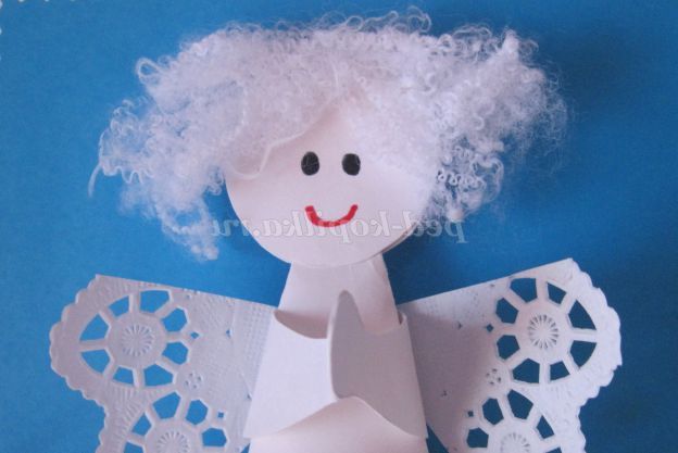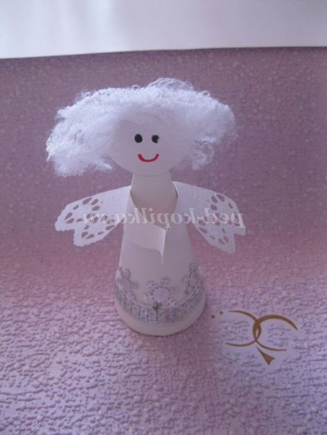 У другого янголятка крила зроблені з серветки більшого діаметру, волосся довше.