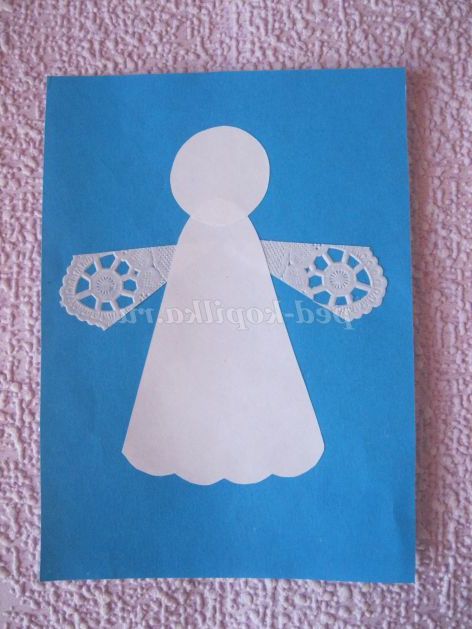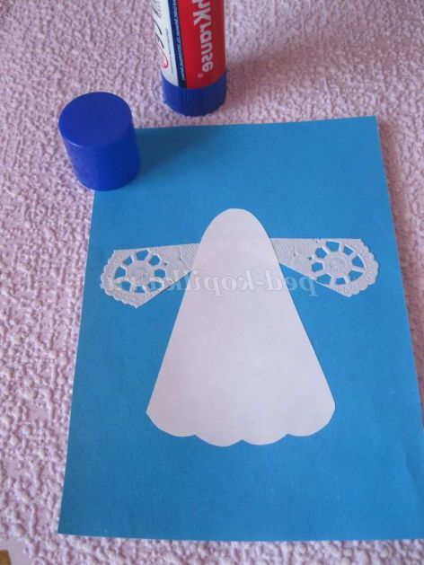 На підготовлену основу аплікації наклеюємо два крила янгола.