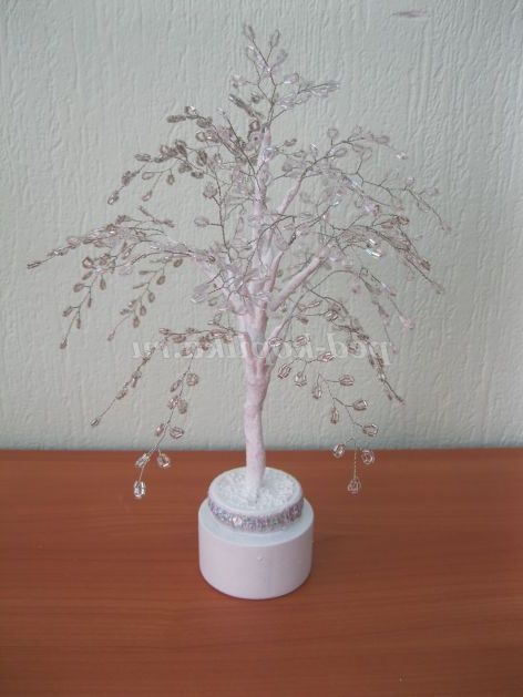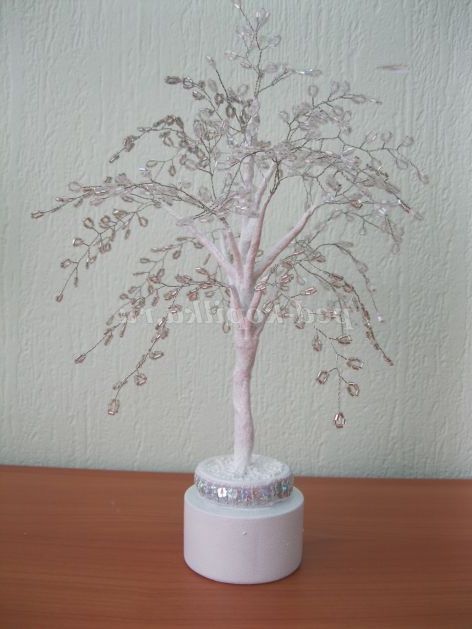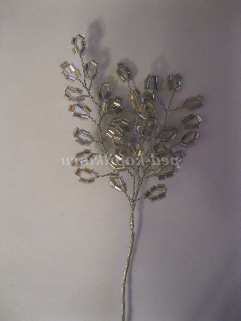 Пропоную вашій увазі ідею виготовлення зимового дерева з бісеру (стеклярусу). Ідея не нова, але використовуючи стеклярус (рубку) замість бісеру та дріт сріблястого кольору, зимове дерево виглядає незвичайно.