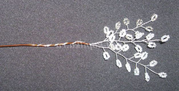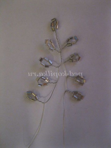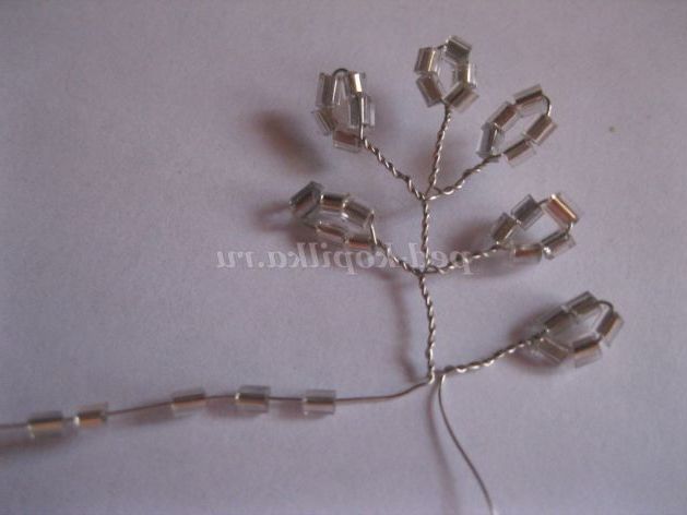 Продовжуємо виконувати скручування на 1 - 1,5 см. Потім дроту розводимо і по черзі на кожній формуємо петлі на відстані 0,5 - 0,7 см від осі гілочки.