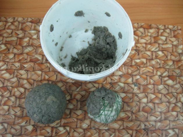 4. Готовий куля встановлюємо у горщику, використовуючи алебастр. Розводимо водою до консистенції густої сметани. Даємо висохнути.