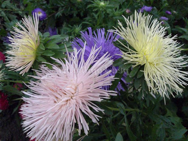 "Астра" - по-грецьки - "зірка". Айстри білі, рожеві, жовті, червоні, сині, фіолетові, з безліччю відтінків, світлих і темних. Але айстри відрізняються не тільки за кольором. Є айстри махрові з великою кількістю вузьких пелюстків, що стирчать в усі сторони. У одних пелюстки прямі, в інших хвилясті, загнуті всередину, як у півонії, у третіх вузькі, загострені - голчасті.
