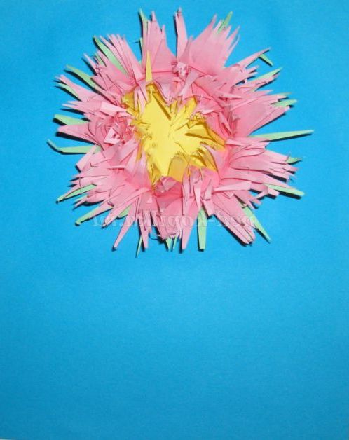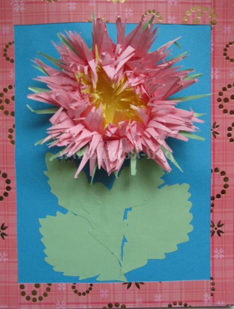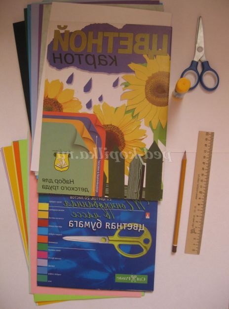 Для виготовлення квітки потрібно кольоровий папір, кольоровий картон, ножиці, клей, простий олівець.