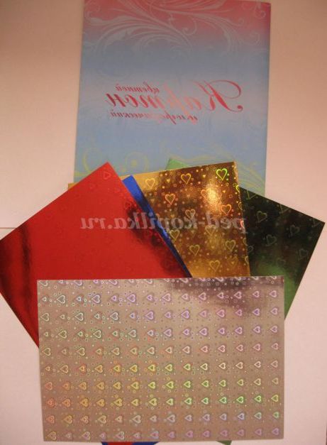 Для прикраси листівки кольоровий голографічний картон. З нього робиться рамка.