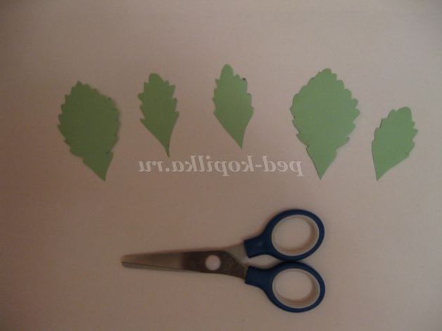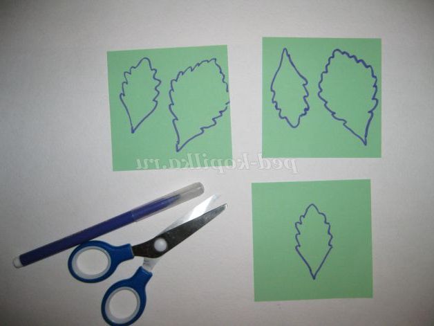Візьмемо залишилися листи зеленого паперу. Намалюємо на них листочки.