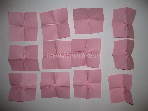 Такі ж заготовки зробимо з 12 квадратів рожевого кольору.