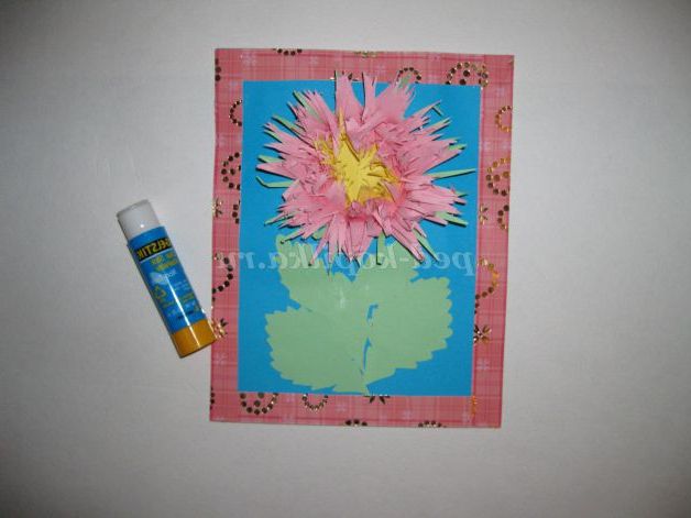 Сумісний центр квітки з отвором у фоні і приклеїмо з вивороту клеєм.