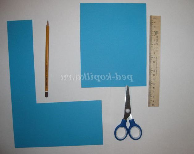 Визначаємося з фоном листівки (він може бути різним). Беремо аркуш синього картону вирізаємо з нього прямокутник розміром 15 см на 19 див.