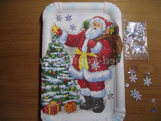 6. Прикрашаємо нашу тарілочку паєтками, сніжинками.