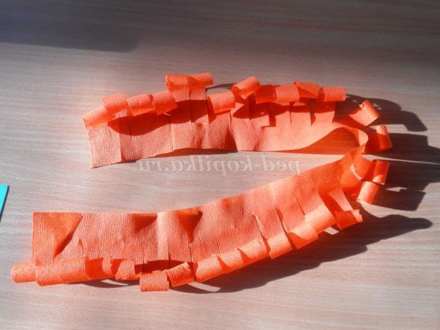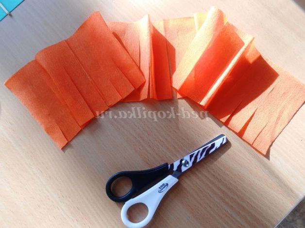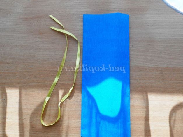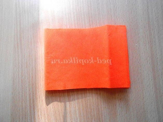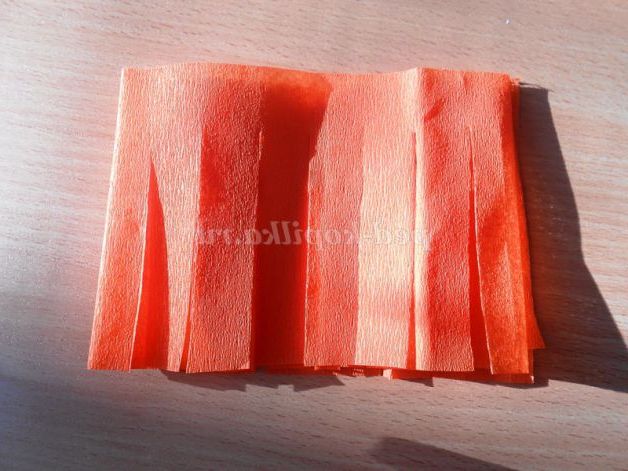 Відрізаємо від гофрованого паперу стрічку розміром приблизно 6 на 30 см і згортаємо її вчетверо