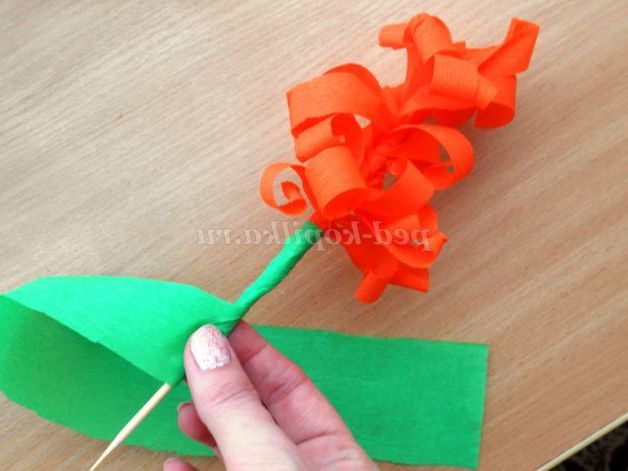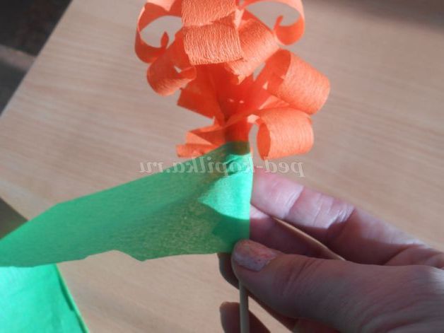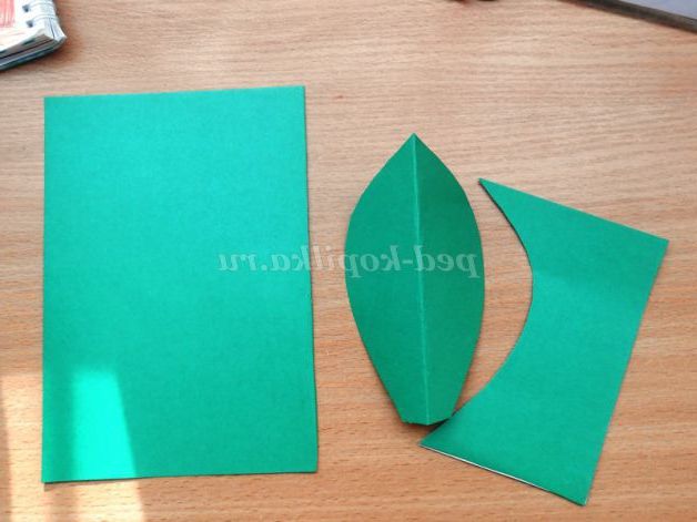 Наступний етап - вирізаємо з картону або паперу листочки для нашого квітки і закріплюємо їх на стеблі