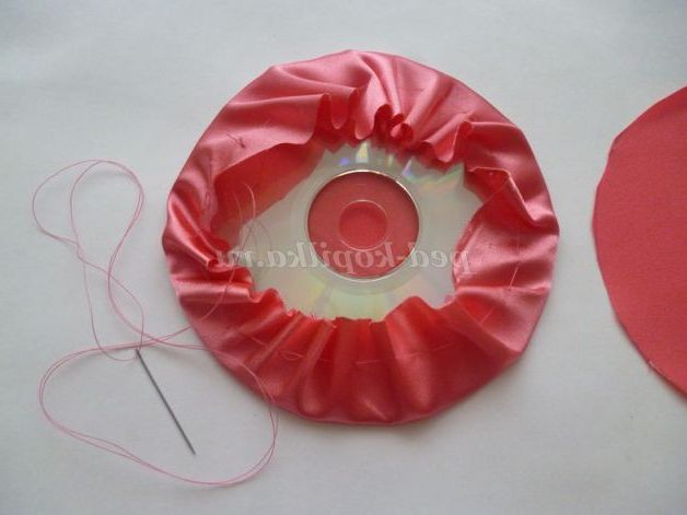 Зробимо легку стяжку вийде мішечок. Вкладемо всередину стяжки диск (або картон на ваш розсуд ). Фото № 7.8.9.10