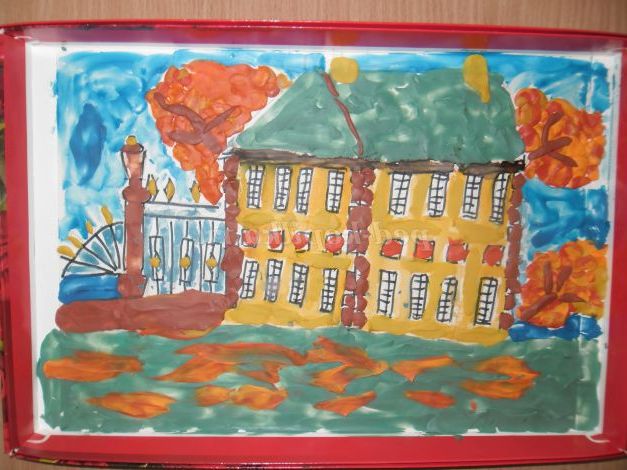 Далі переходимо до «розфарбовуванню» самого будиночка і решітки. Це найбільш трудомісткий процес, так як вимагає найбільшої акуратності і концентрації уваги дитини. Фото 7.