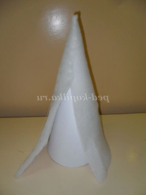 2. Відрізати необхідну кількість синтепону, обернути конус, зшити краї. Вийде основа для «сніжної» ялинки.