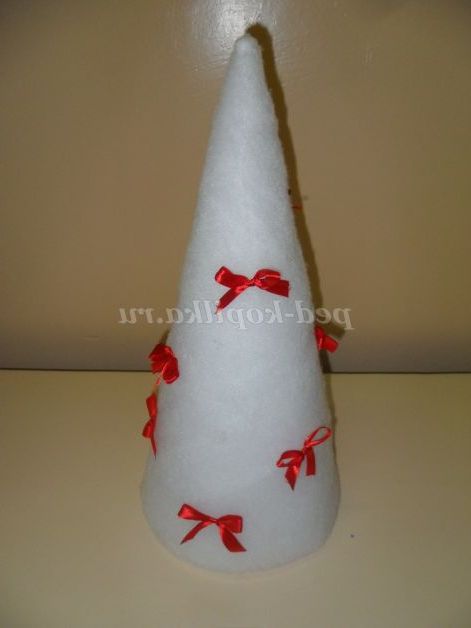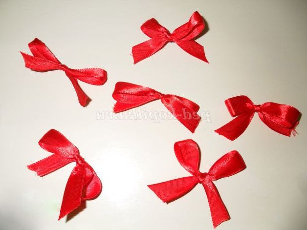 3. З червоною атласною стрічки зав'язати бантики і приклеїти їх на ялинку.
