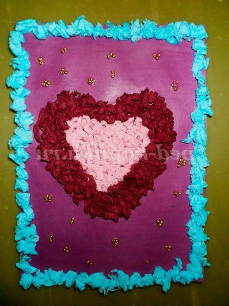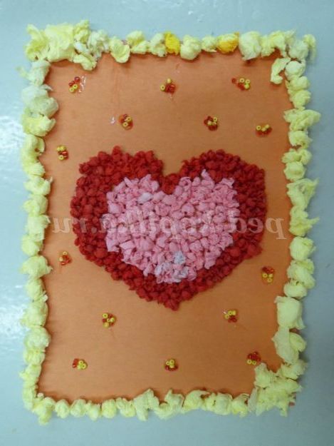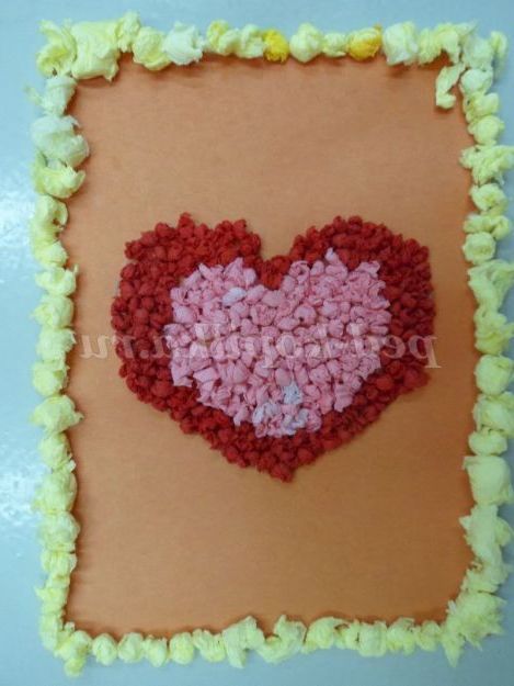 Аплікація з паперових серветок. Сердечко