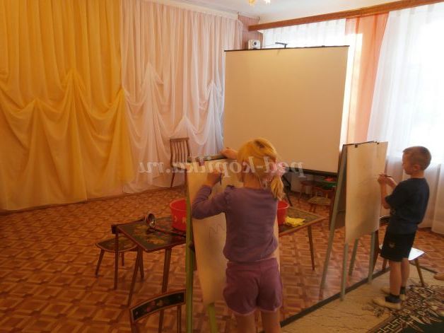 Обладнання: 2 мольберта, фломастери, 2 аркуша, 2 столи, 2 тазу, кульки, 5 обручів, 2 ємності, емблеми «крапельок» для нагородження (малі і великі)