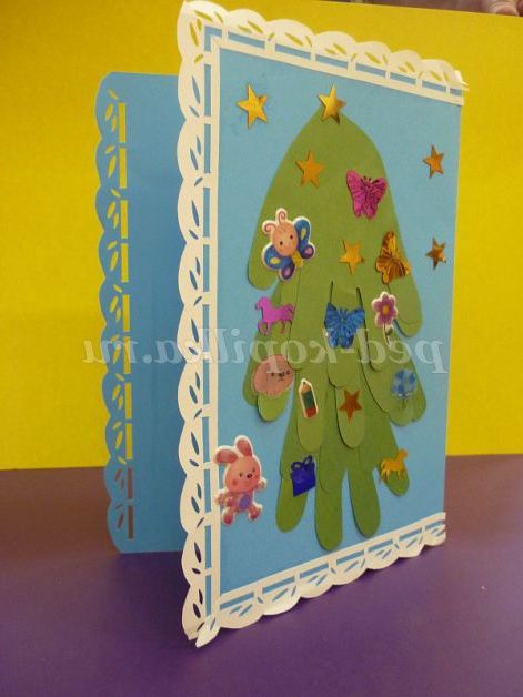 Новорічна листівка своїми руками Який Новий рік без подарунків! Звичайно, кожен малюк буде очікувати сюрпризів від батьків і Діда Мороза. Але адже і сам дитина може піднести новорічний подарунок своїм близьким, наприклад, у вигляді новорічної листівки. Ми в дитячому саду намагаємось до кожного свята зробити подарунок або листівку татам, мамам, а так само бабусям і дідусям. Діти завжди з великим бажанням відгукуються на пропозицію зробити подарунок своїм близьким. Головне, щоб завдання було не дуже т...