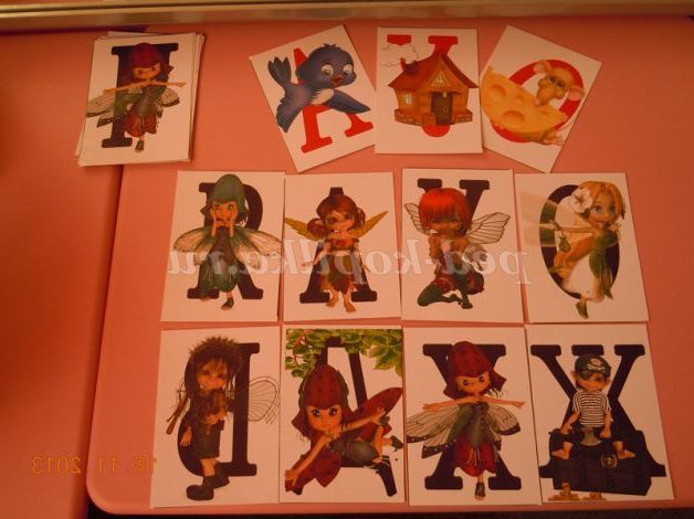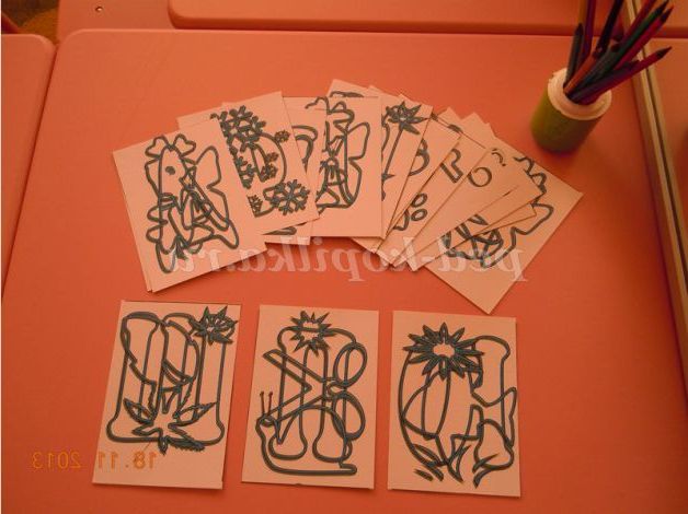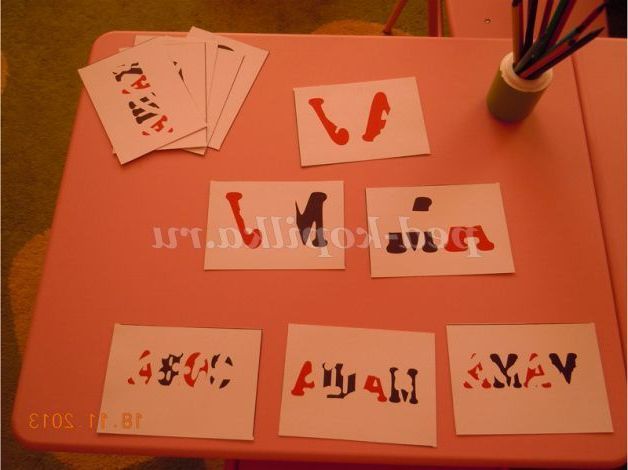 Дитині необхідно за елементами літер вгадати, який склад або слово написано на картці.