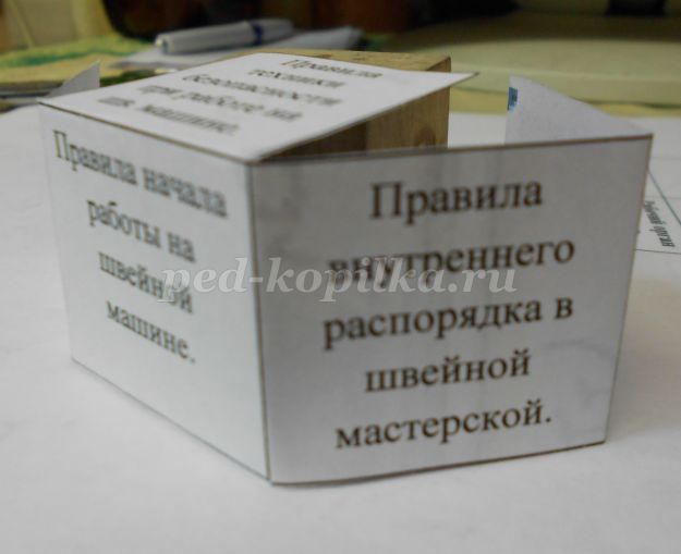 I. призначений для перевірки знань, що відносяться до однієї теми. На кожній грані кубика - питання або картинка деталі швейної машини.