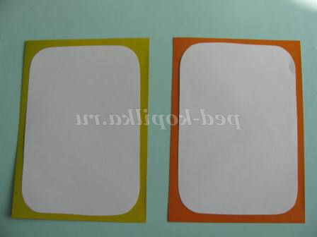 Робимо основу для листівки, у білого аркуша заокруглюємо кути і не приклеюємо.