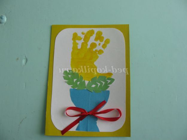 Думаю, що кожній матусі буде приємно отримати такий подарунок від малюка. Така листівка надалі буде нагадувати батькам і дитині про те, якою маленькою у нього колись була долонька.