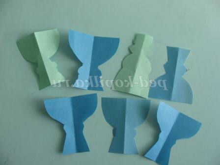 Прямокутний аркуш згинаємо навпіл, малюємо контур майбутньої вази, вирізаємо.