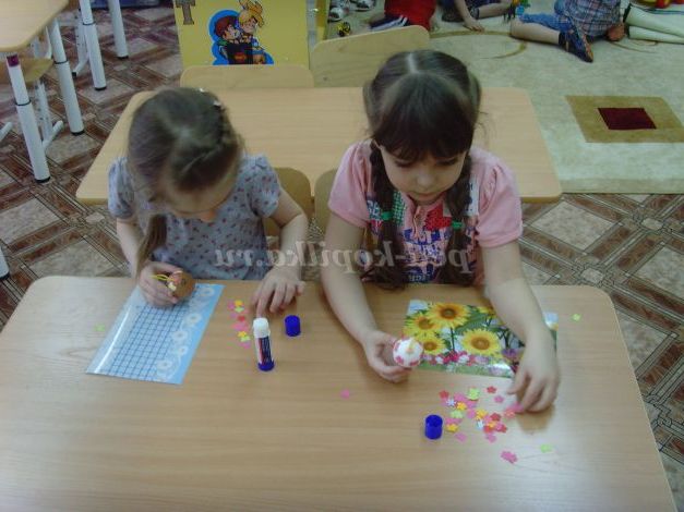 Великдень широко святкується в дитячих дошкільних установах. Це дуже гарне свято, на підготовку до якого відводиться багато часу. В період великоднього тижня всі педагоги розписують з дітьми великодні яйця, готують великодні вироби.