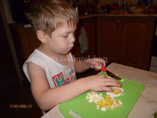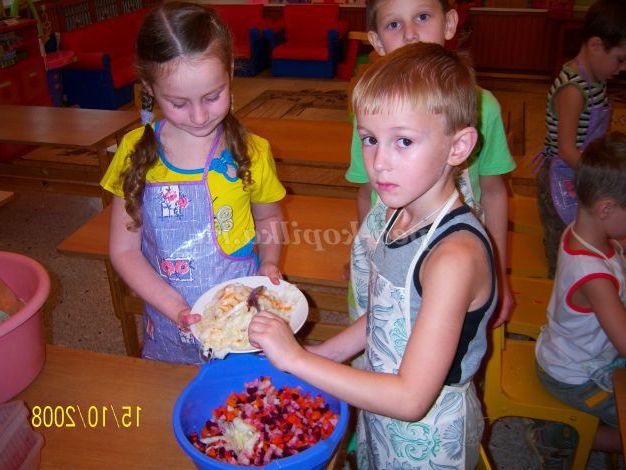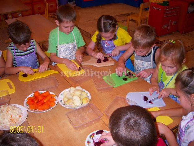 Завдання: розвивати інтерес до приготування їжі; вчити вмінню правильно користуватися ножем і нарізати кубиками овочі