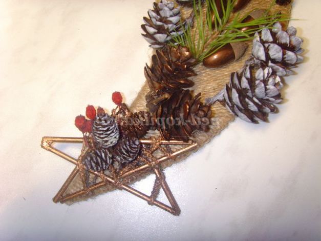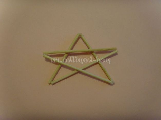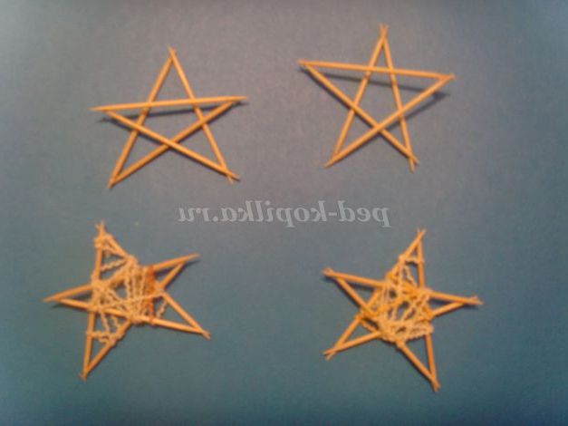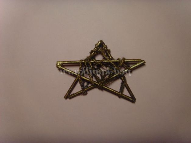 Можна зробити із зубочисток. Потім обмотуємо зірку нитками і фарбуємо бронзовою фарбою (можна з балончика)