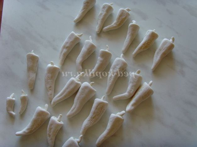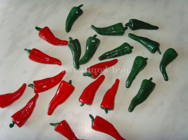 З солоного тіста зліпила перець і залишаю його сушитися при кімнатній температурі два дні, потім досушила в духовці при мінімальній температурі 50 градусів.