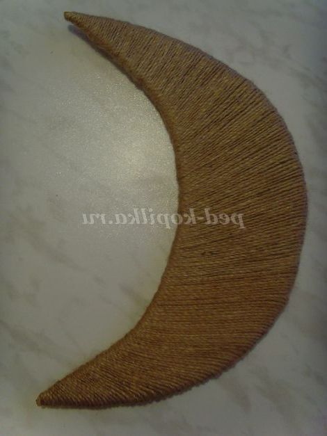 Обмотуємо місяць шпагатом, місцями промазуємо клеєм