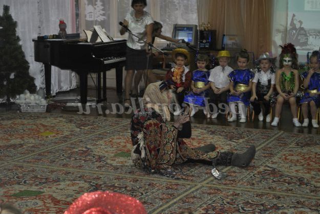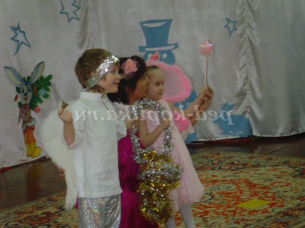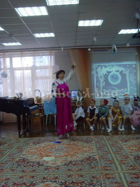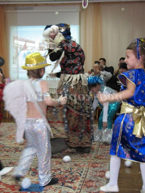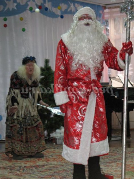 А мені мороз ваш набрид, зуб останній захворів. нічим бабусі жувати! А Дід Морозу треба гнати! Гнати волшебною мітлою! а Новий рік зустрічати зі мною! Згодні дітки! Як немає? А я ось факел потягли, щоб запалити ялинку.