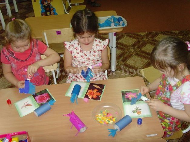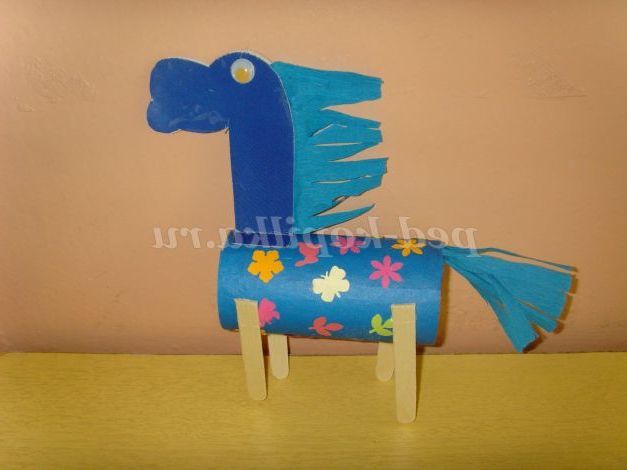 Діти самостійно розрізали гофрований папір для гриви і хвоста,обклеїли рулончик,приклеїли гриву до голови і прикрасили конячку(я допомогла дітям приклеїти ноги на гарячий клей)
