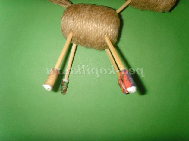 5.Обматываем ніжки і шию шпагатом, місцями промазываю клеєм "титан"