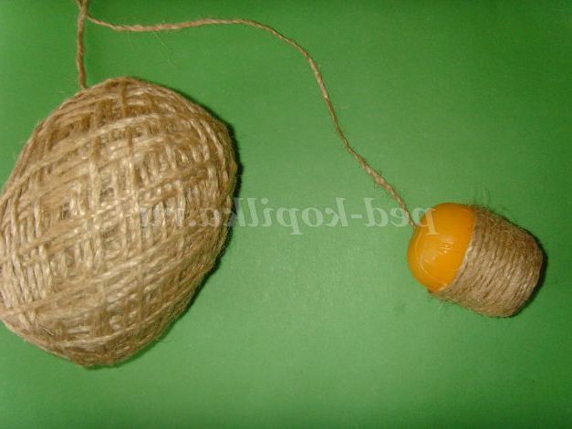 Обмотуємо шпагатом капсулу. Мажемо клеєм "титан", накручуємо і добре притискаємо, намагаємося робити рівні витки.