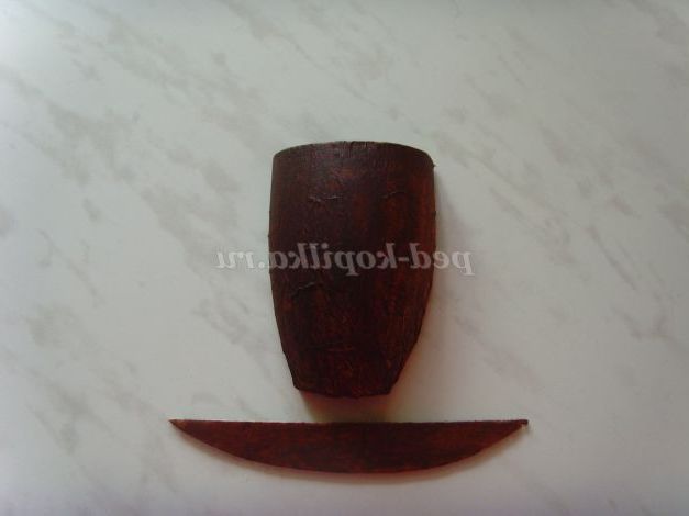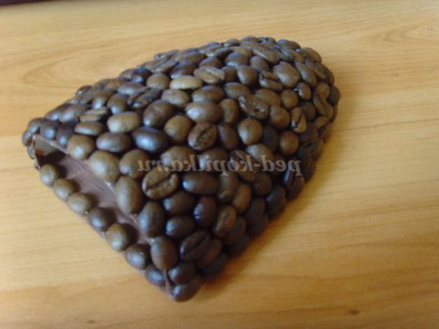 А можна і зробити по - іншому. Спочатку заготівлю намазати клеєм ПВА, а потім посипати меленою кавою (мені другий варіант не дуже сподобався, цей варіант підійде для тих, хто кавові зерна приклеює тільки на гарячий клей; я ж користуюся в основному «Титаном», а гарячий клей використовую в тих випадках, коли потрібно, щоб кава відразу кинулося; і я зафарбувала зверху заготівлю знову гуашшю)