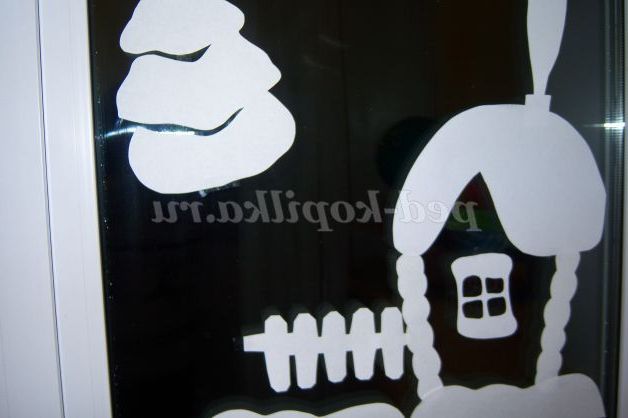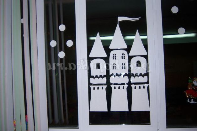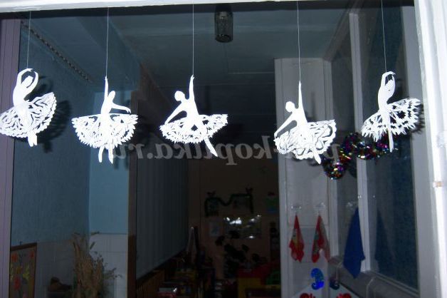 У дверних отворах вирізала з паперу"Сніжинок - балеринок"