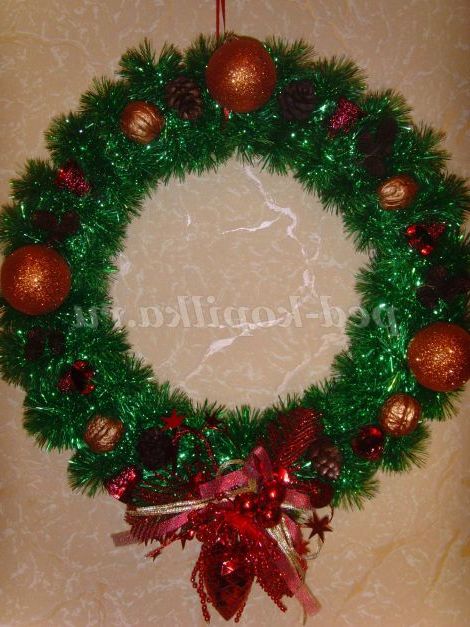 Для адміністратора виготовила "Різдвяний вінок","Ялинку", підвісила гірлянди з шишок і підкови