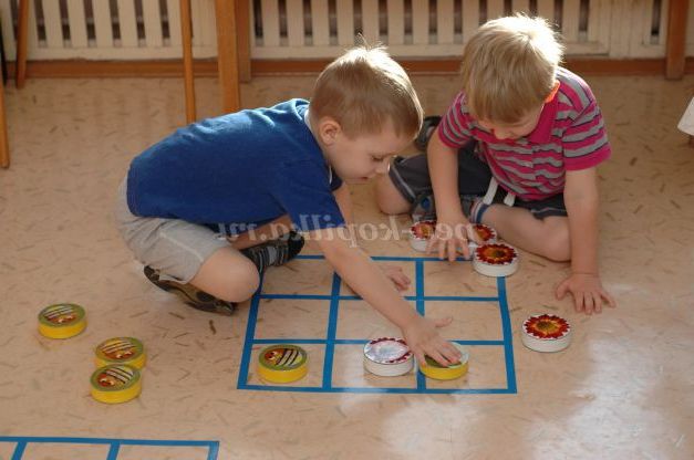Спочатку зробили полі. Ідея фішок прийшла пізніше. Діти грали елементами конструктора. Різного кольору конструктор - і вперед!