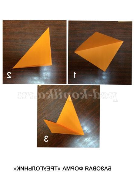 - Складіть квадрат по діагоналі (базова форма «трикутник»). (1,2)