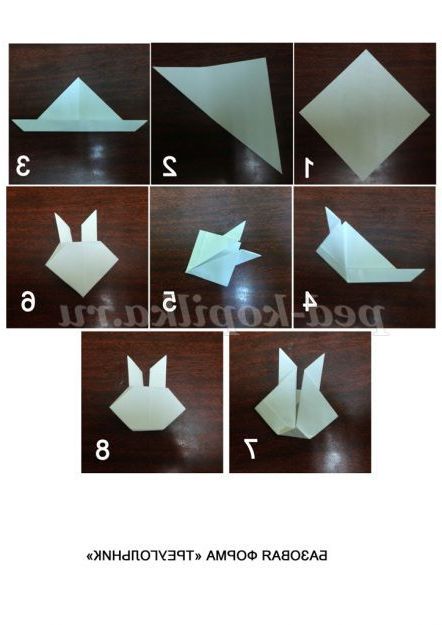 - Квадрат зігніть по діагоналі (базова форма «трикутник») (1,2).