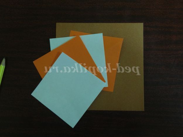 Квадрат коричневого кольору зі сторонами 15 см, квадрати оранжевого і білого кольорів готуються зі сторонами 8 див.