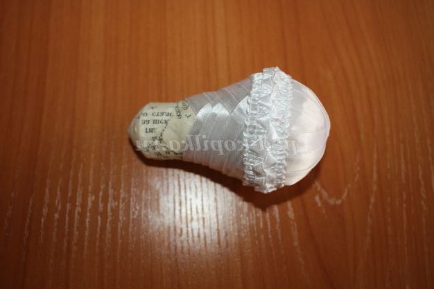 5. Обмотуємо стрічку навколо лампочки, приклеюємо клеєм «Кристал» (фото№3, 4)